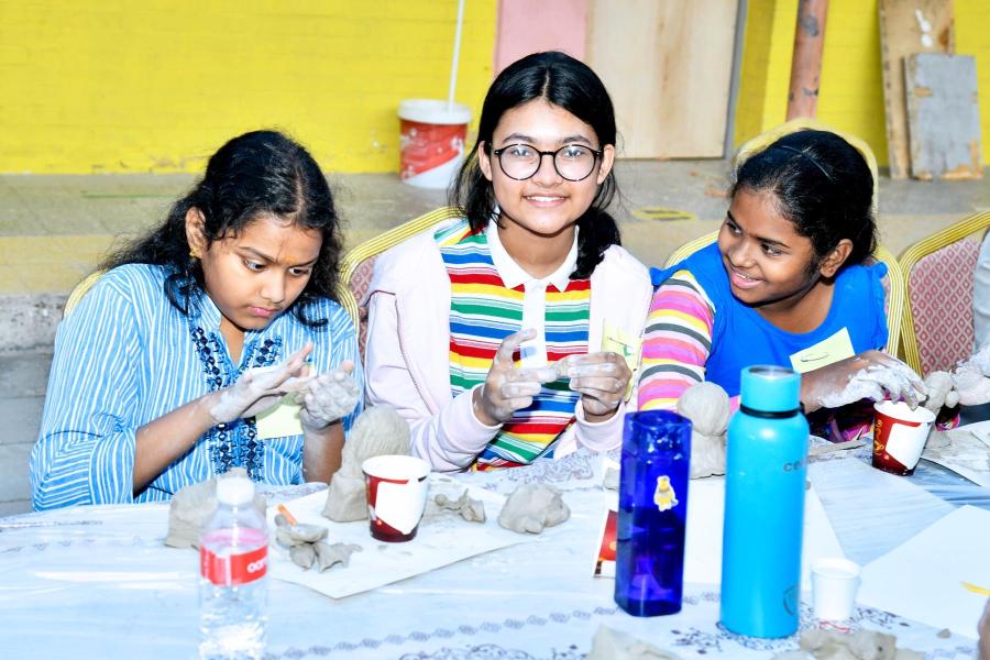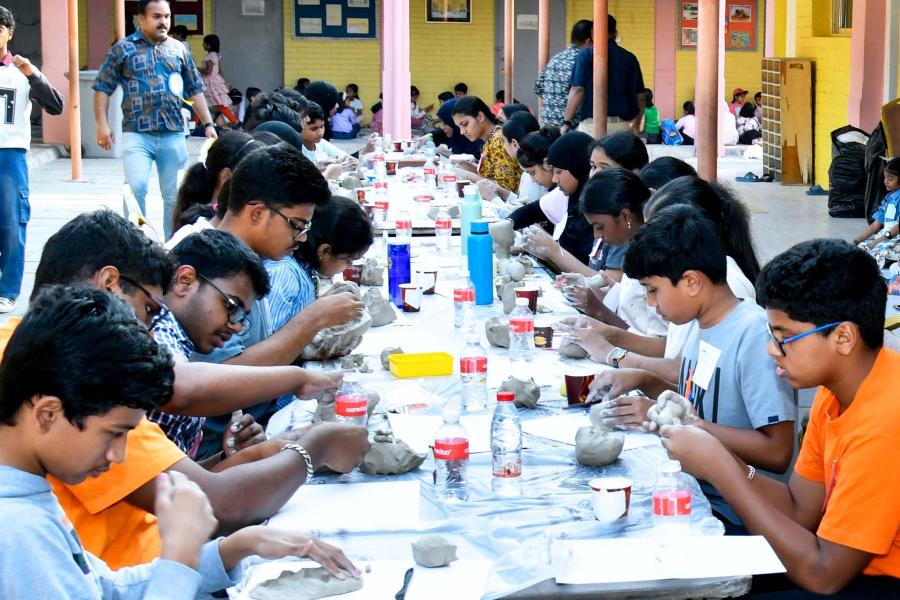 All roads led to the venue of Kala (Art) Kuwait “NIRAM 2025” and the entire venue was full crowded with little artists from various corners of Indian Expatriate Community in Kuwait, as well as from Arab, Philippines and Sri Lankan nationals studying in Indian Schools, flashing with different colours and lines created a festive atmosphere. There were more than a 3120 entries out of which 2685 children took part in the competitions. Various Gift items were distributed to all participants immediately upon conclusion of the competition of each group. Clay Sculpture was also a competition item for the students and the parents were actively participated in the open canvas as well.